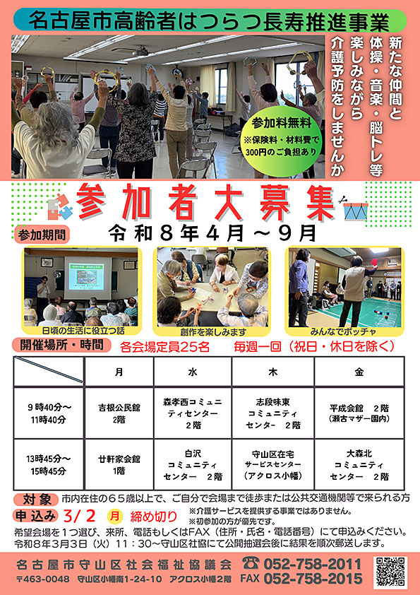 | 申込期間 | 令和8年3月2日(月) ★詳しくは2月発行の「広報なごや」をご覧ください |