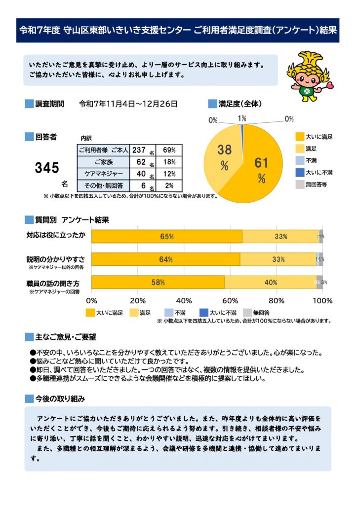 『ご利用者満足度調査』を実施いたしました 2026年3月25日 地域活動 令和7年11月4日~12月26日までの期間にて『ご利用者満足度調査』を実施いたしました。 いただいたご意見を真摯に受け止め、より一層のサービス向上に取り組みます。 ご協力いただいた皆様に、心よりお礼申し上げます。